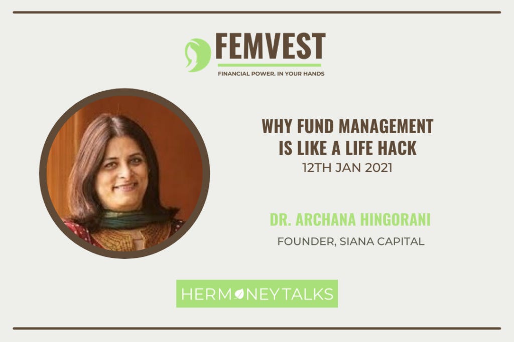 They say life imitates fiction. But do you know that life can imitate science too? And fund management is a science by itself. It harbors life hacks and secrets that can be harnessed to improve the quality of our life, the quality of our thoughts, and the quality of our successes. Dwelling on life hacks from fund management at the recently concluded Femvest 2021 virtual summit on women’s financial empowerment, Dr. Archana Hingorani, Founder of Siana Capital, spoke on the topic ‘Why Fund Management is like a Life Hack’.